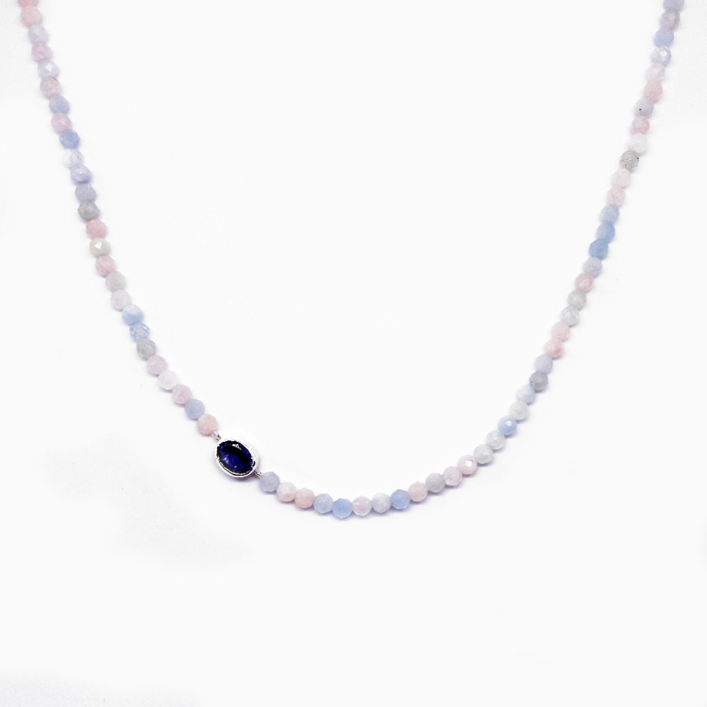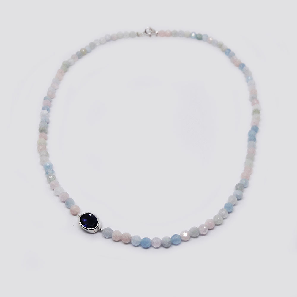 Beryl necklace with silver detail with iolite stone.
