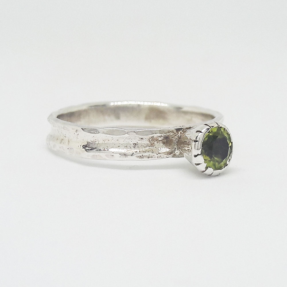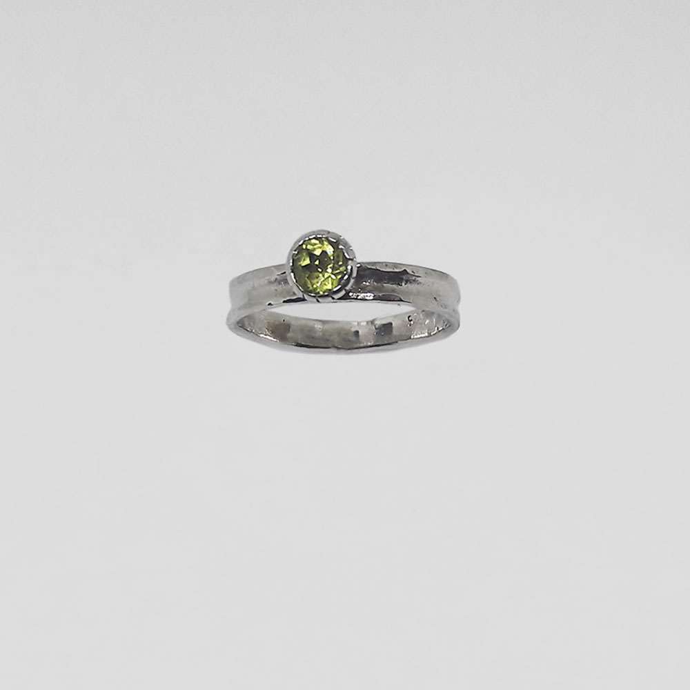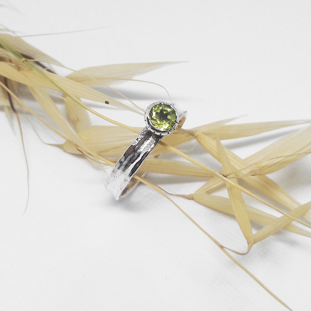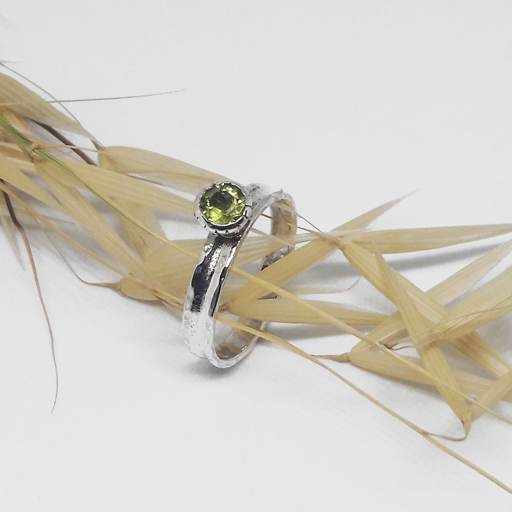 Handmade silver ring with synthetic stone in peridot color