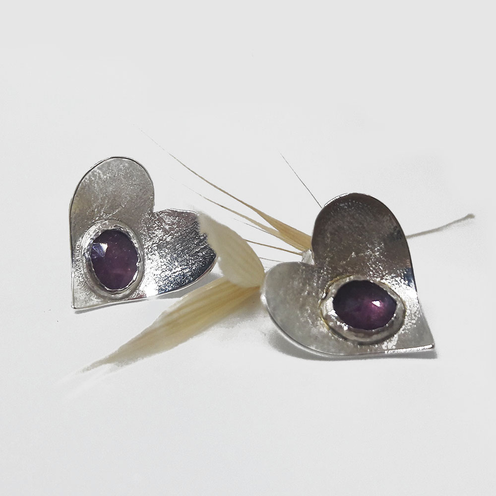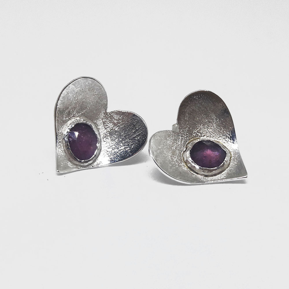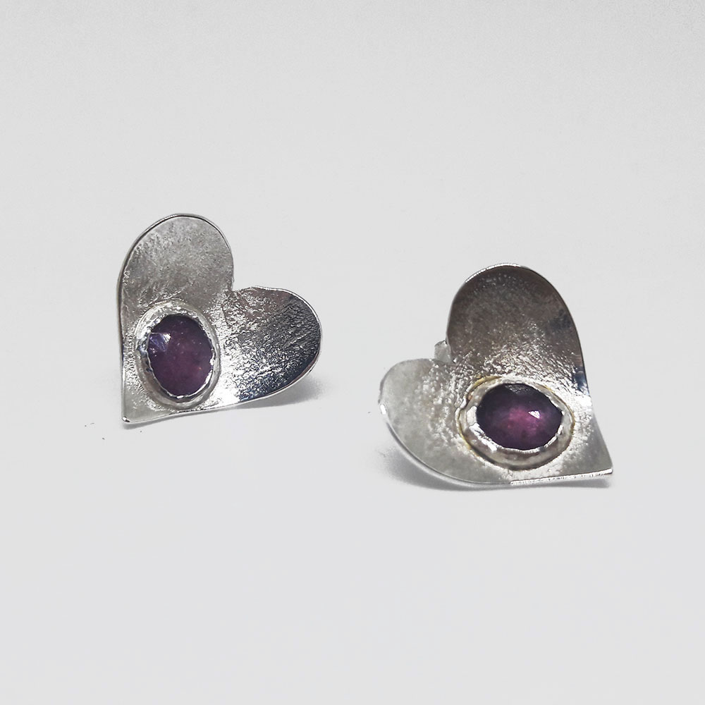 Handmade silver earrings with ruby root stone