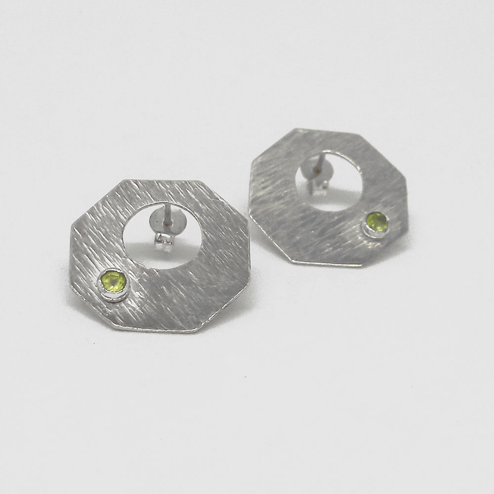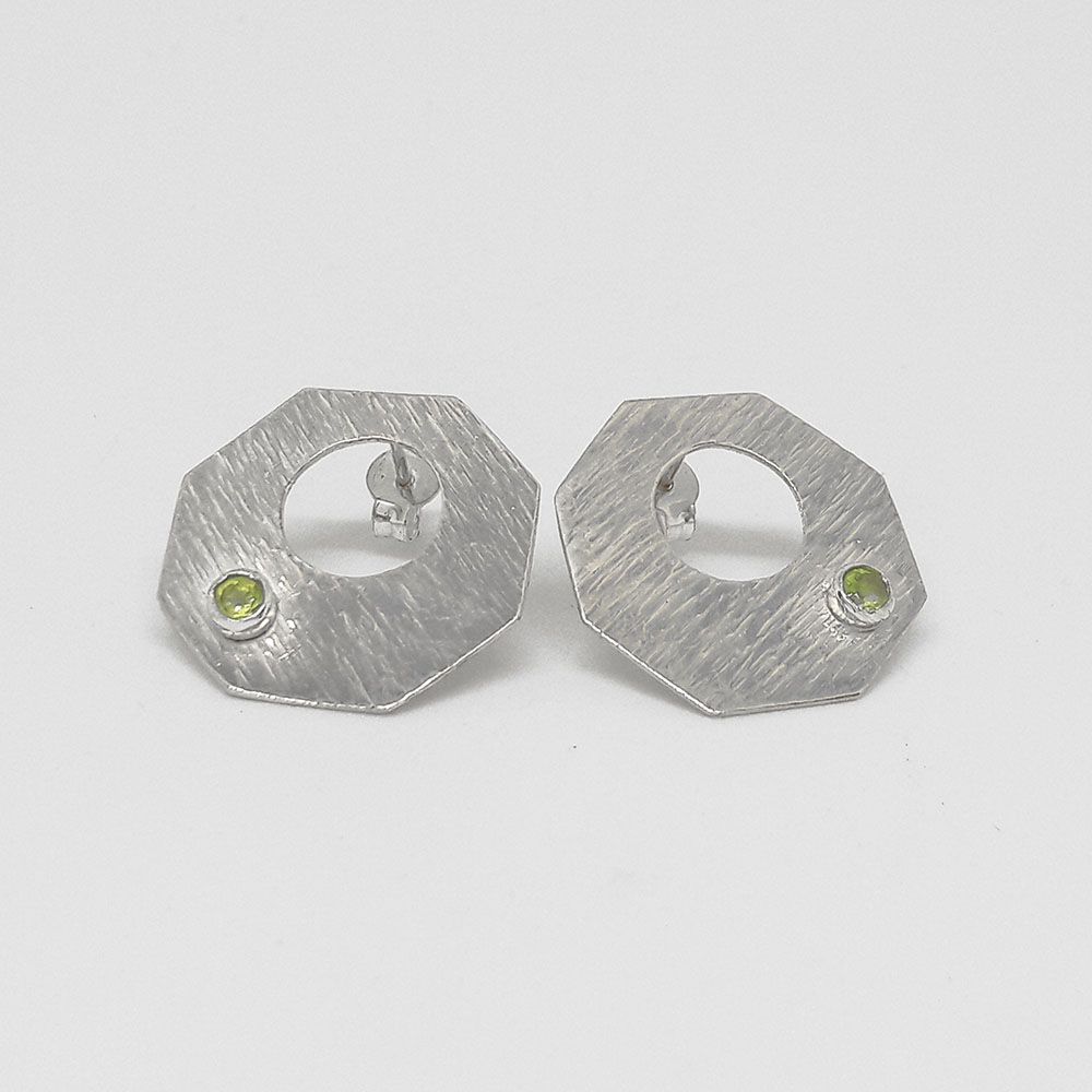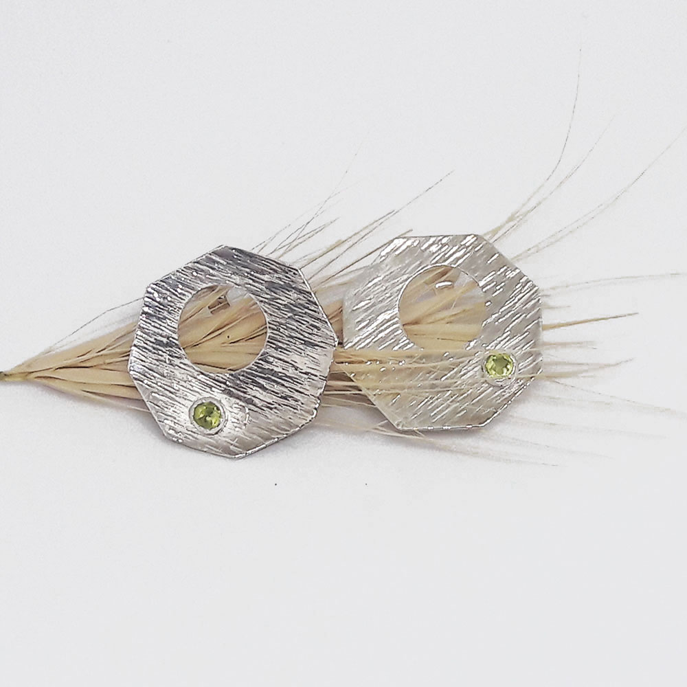 Handmade silver earrings with peridot stone