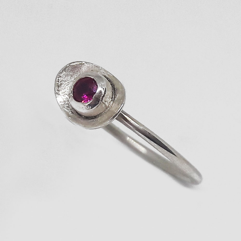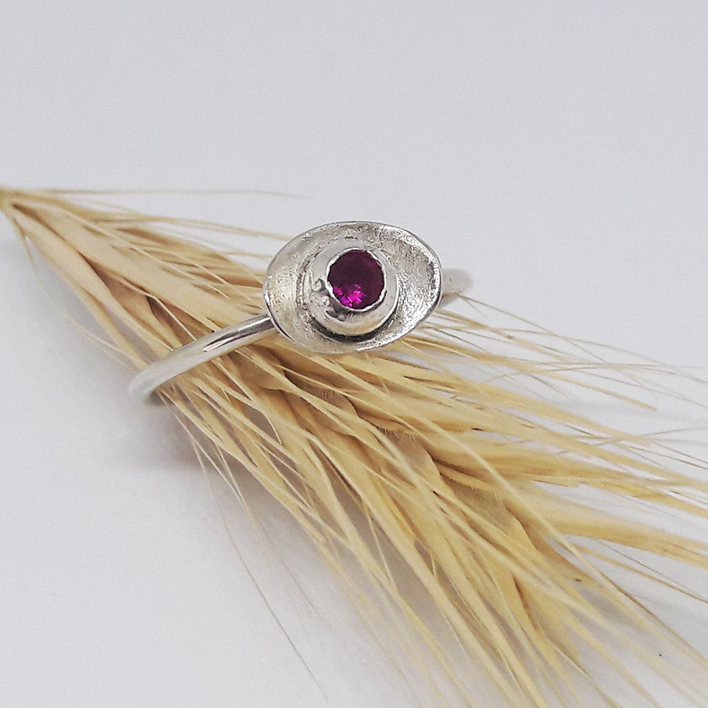 Handemade silver ring with rubby colour stone