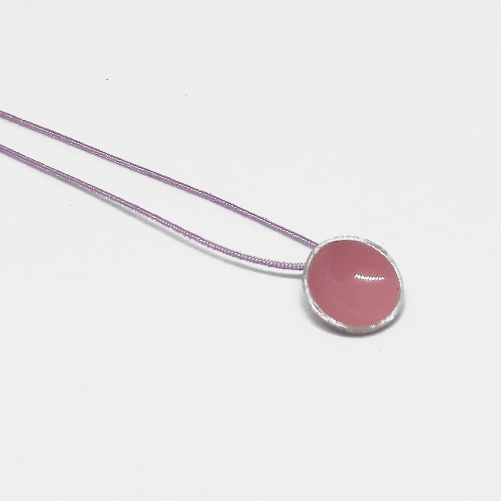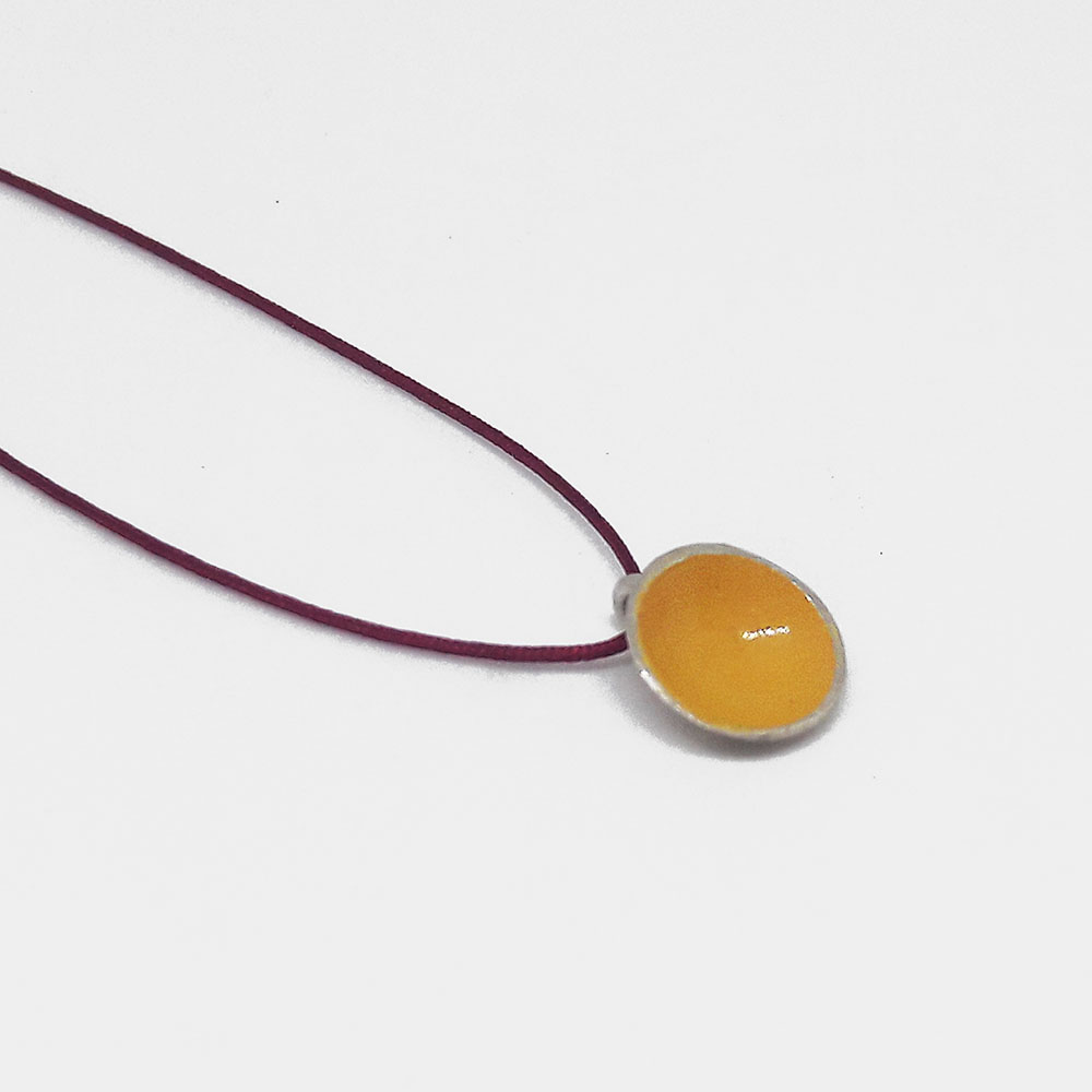 Silver pendant with enamel on cord