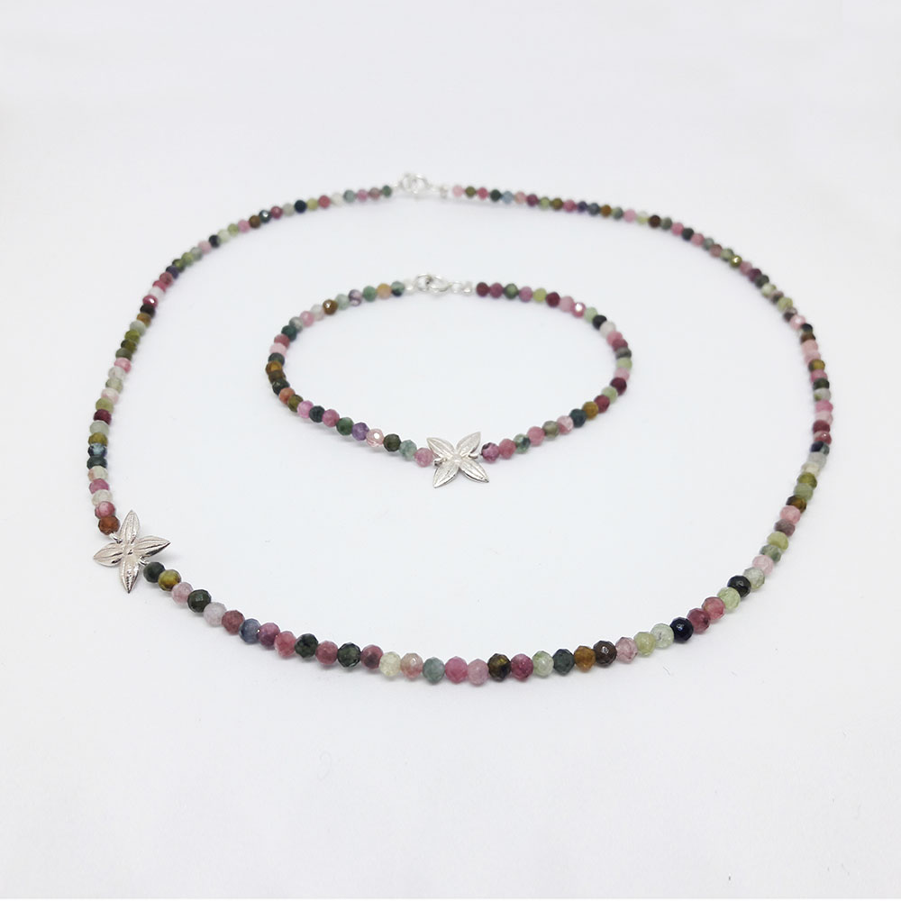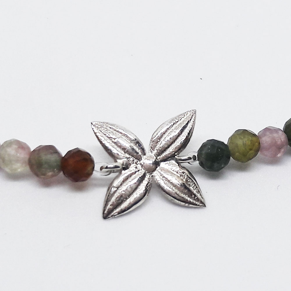 Tourmaline stone bracelet with silver detail inspired from Minoan culture.