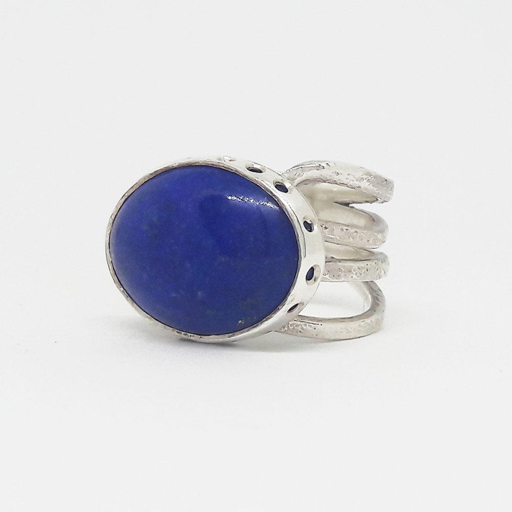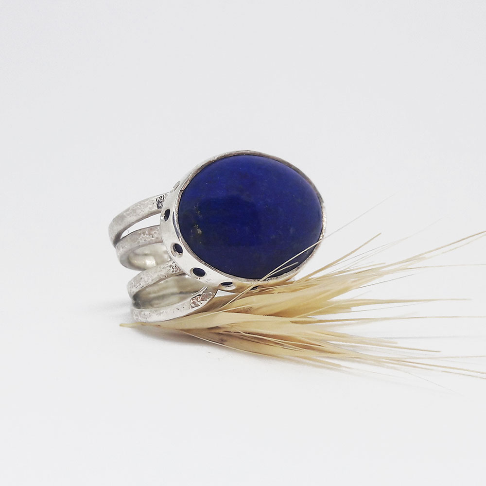 Unique handmade silver ring with lapis stone