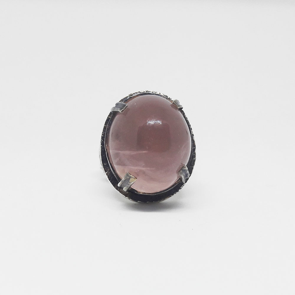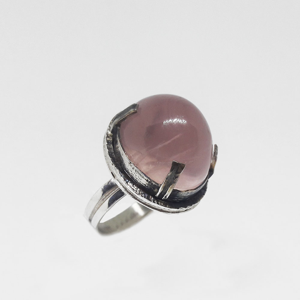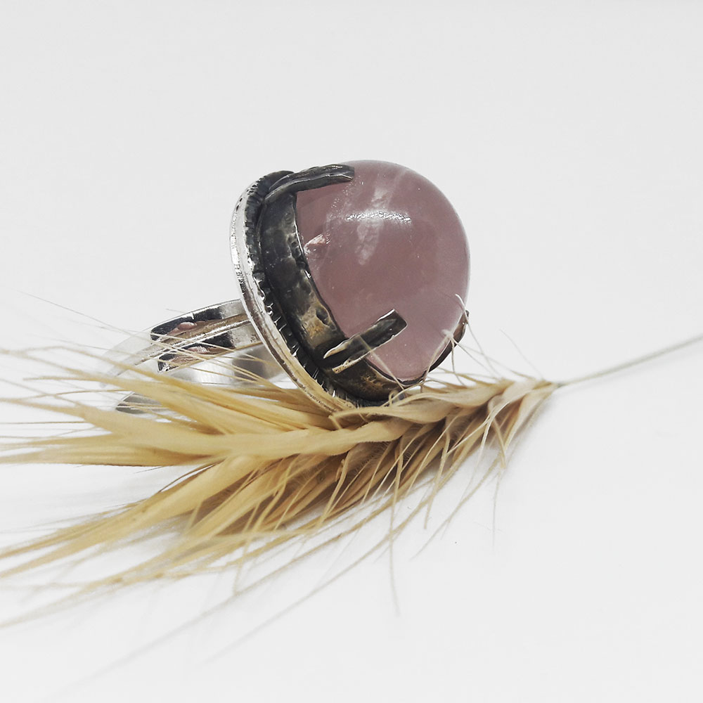 Unique silver ring with pink quarz stone